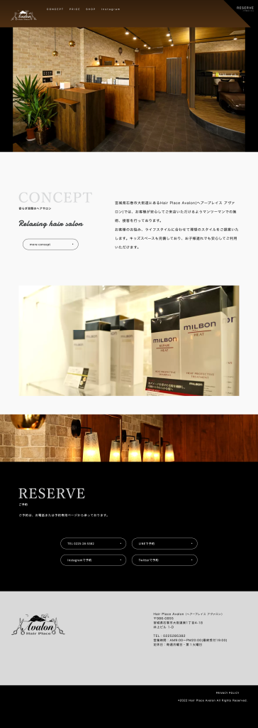 Hair Place Avalon Websiteウェブサイト|Website 石巻市大街道にある美容室「Hair Place Avalon(ヘアープレイスアヴァロン)」のWebサイトを作成しました。 https://hairplace-avalon.jp